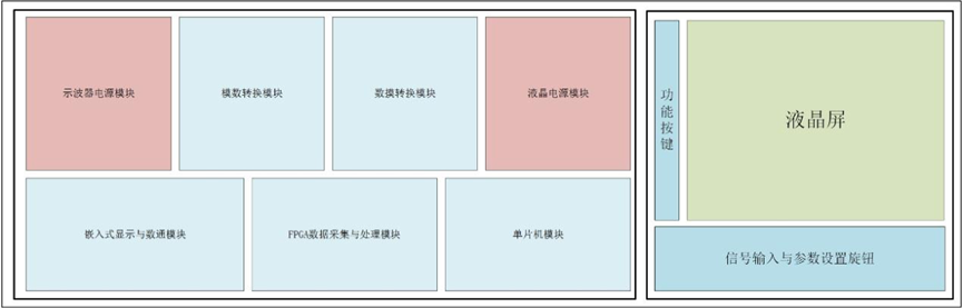 2、 以数字示波器等测试仪器为工程案例,将测试仪器模拟前端、人机交互、数据采集 与处理、波形显示等单元设计成可插拔式模块,学生能沉浸式各种功能模块和各种 算法软件;