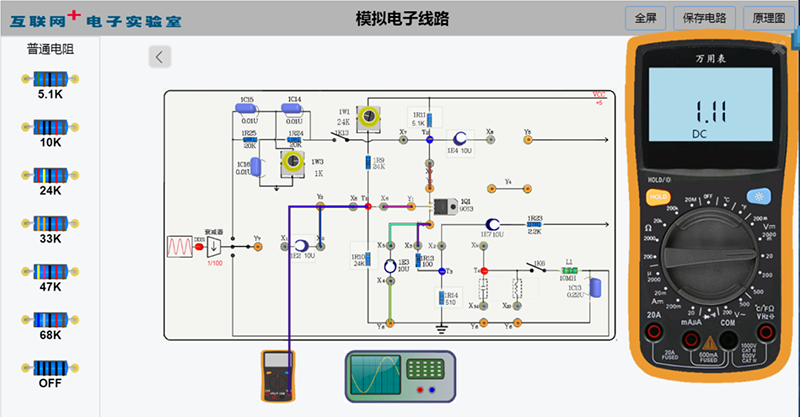 在线实验平台内嵌多种真实仪器面板的虚拟仪器:信号源、万用表、稳压源、多通道示波器、逻辑分析仪、扫频仪、毫伏表等;