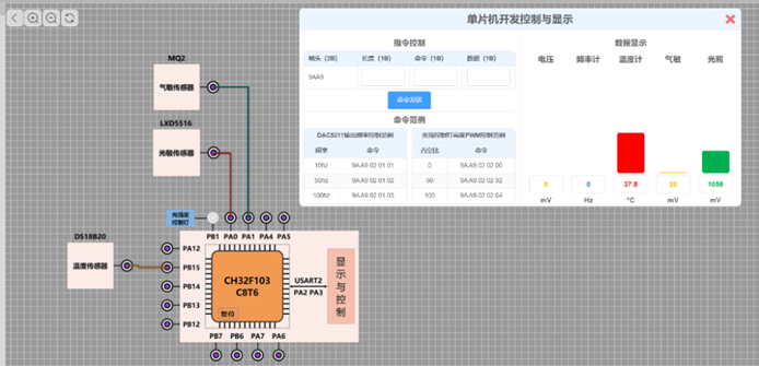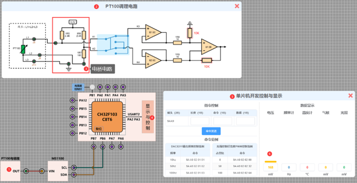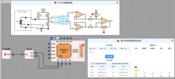 (4)配备温度、光敏、气敏等传感器,支持传感器接口与电桥电路设计。