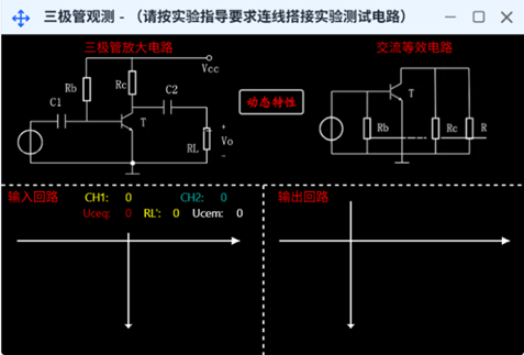 ④ 示波器试接口-晶体管特性测试:三极管特性曲线观测主要对基于三极管的放大电路静态分析和动态分析,采用图解法帮助学生理解和观测三极管的输入和输出的特性曲线