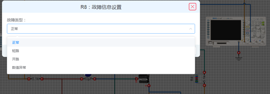 2、故障检测仿真:基于BS架构,故障可设置,包括:仪表设置故障,晶体管与运算放大器功能故障、阻容器件功能故障、外设(按键,LED,数码管等)损坏故障,连线错误故障,连接线开路故障等多种故障类型;