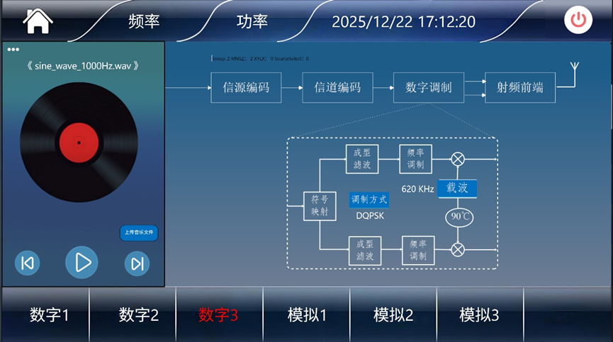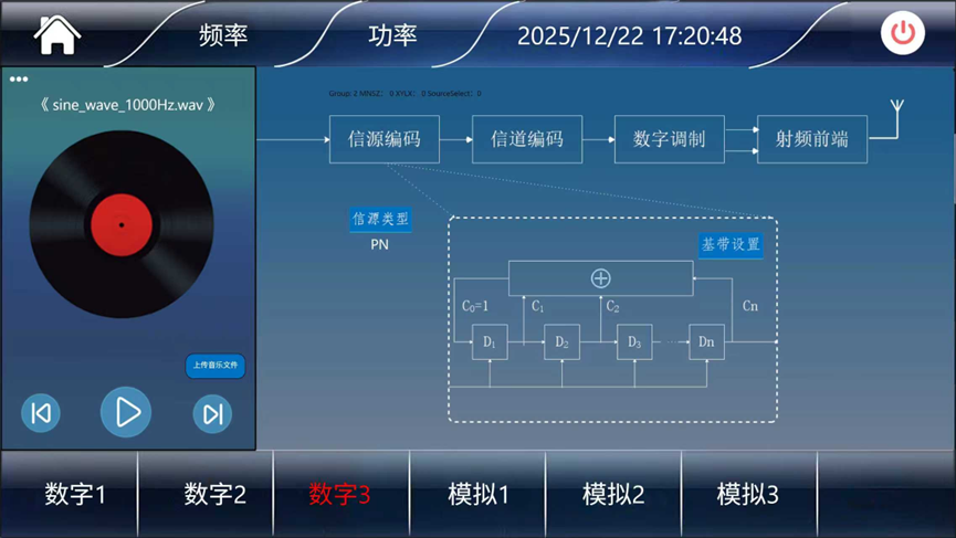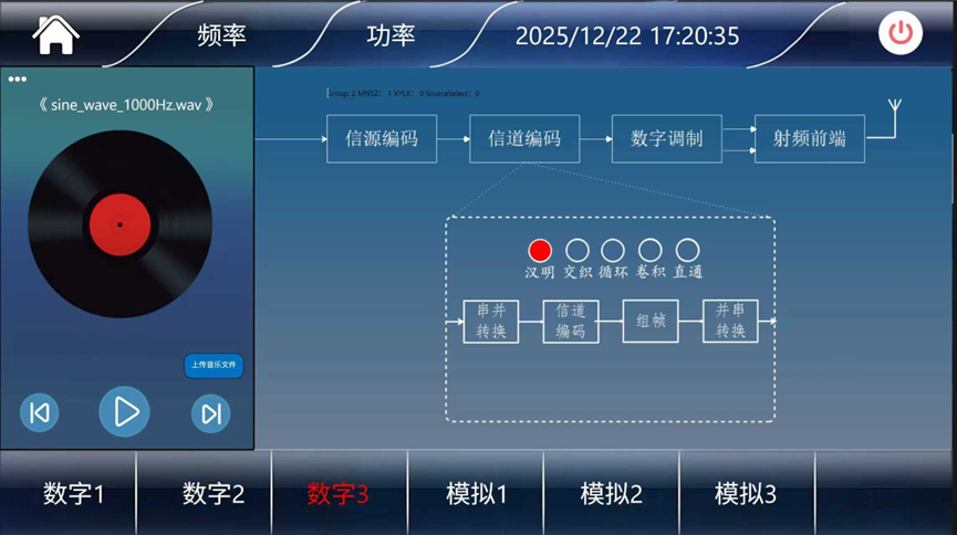 2、数字广播支持制式、基带数据帧头、信源编码(CVSD/PCM)、信道编码(汉明 / 交织 / 循环 / 卷积)、数字调制(FSK/DPSK/DQPSK)等参数,可在信号处理流程图界面设置。