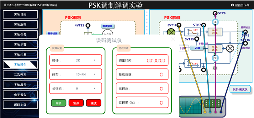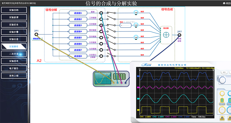 在线实验平台内嵌多种真实仪器面板的虚拟仪器:信号源、多通道示波器、逻辑分析仪、扫频仪、误码仪等;