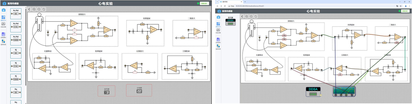 医疗传感器在线实验平台主要面向电子信息工程、生物医学工程、临床医学、医学影像学、仪器仪表等专业开设《生物医学传感器与仪器》、《医用电子学》、《传感器技术及应用》、《医学信号处理》、《医疗仪器设计与开发》等课程教学、实验、示教的需要而设计,也可用于传感器技术类课程的课题设计和毕业设计。