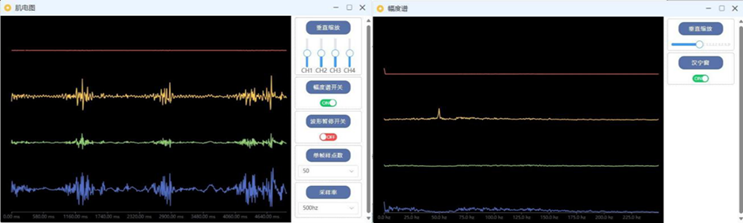 人体激励各电路环节的肌电图和幅度谱(肌电实验,右键数据导出到excel)