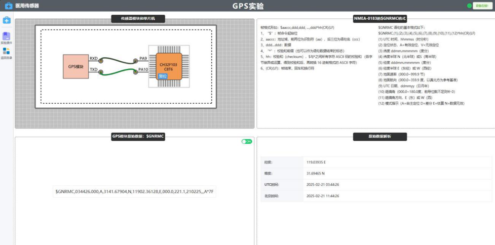 电路搭建/原始数据/解析后数据显示/二次开发界面(GPS实验)