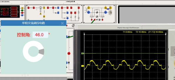 标配单相调压、DCDC、SPWM 单相脉宽调制、晶闸管主电路、器件特性测试、触发信号产生、零电压开关、无功补偿8 个模块,各模块配有功能框图。学生可通过导线自主搭电路,配合示波器、交直流电表完成实验。