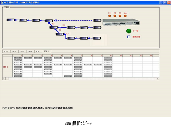 6、提供SDH示教分析软件,能进行SDH段开销字节观察实验、SDH高阶通道开销字节观察实验、SDH低阶通道开销字节观察实验、SDH帧的复用与定位等实验。