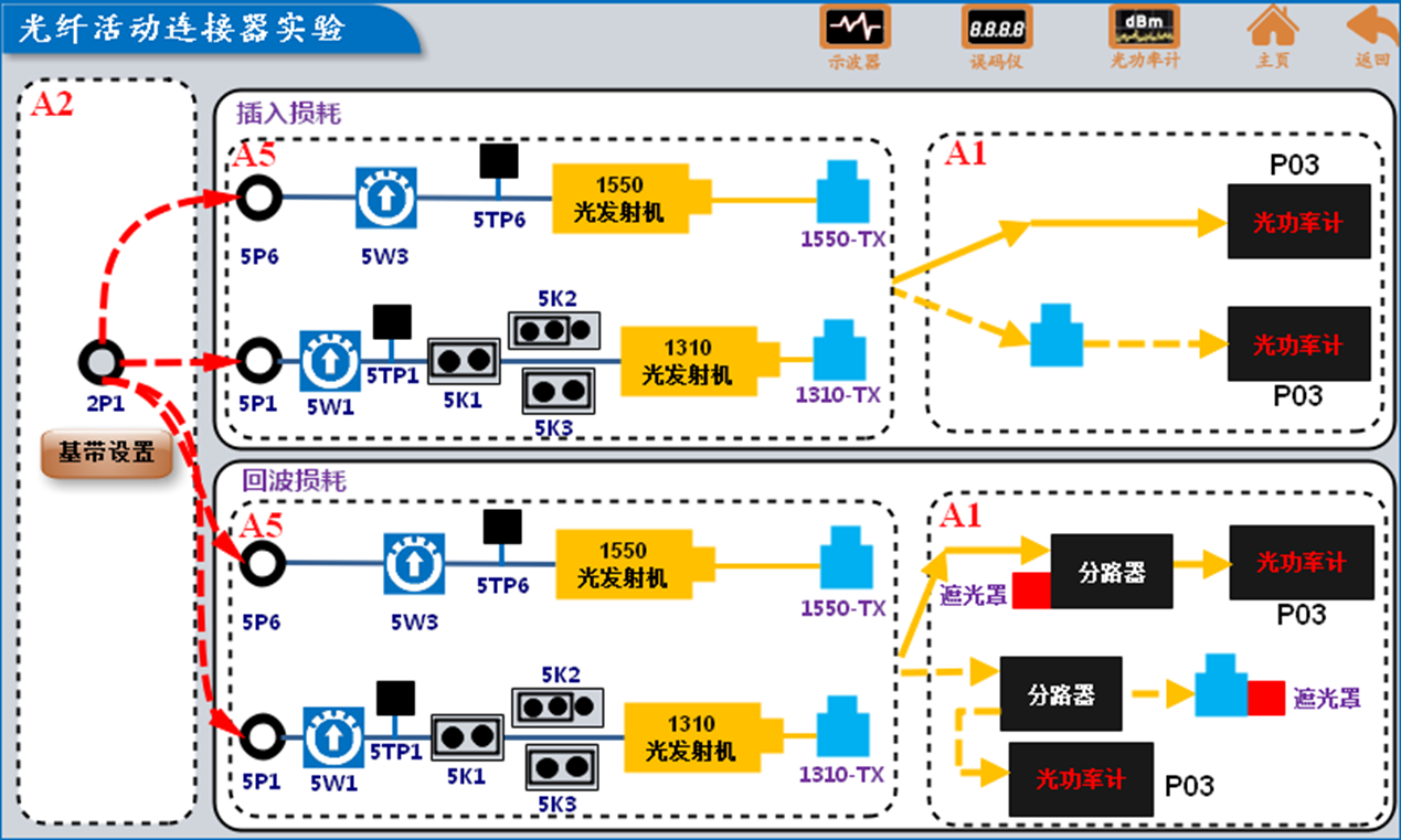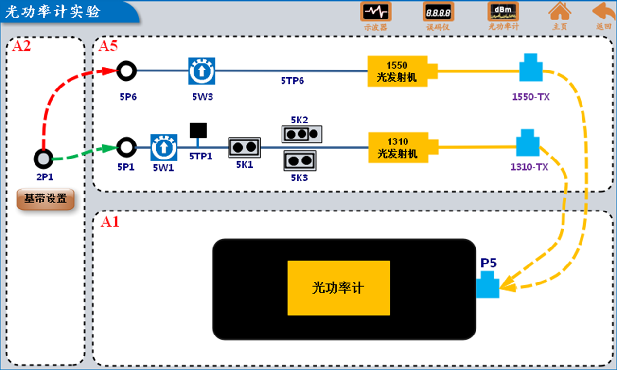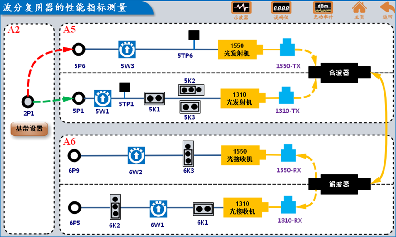 3、基于操作系统的人机交互界面友好,学生能实时调阅实验框图;能用鼠标:调整模拟信号幅度、频率、波形,设置基带数据、PDH时隙、SDH指针、光端机偏置电流等。
