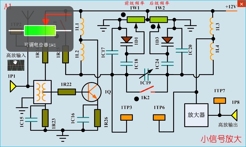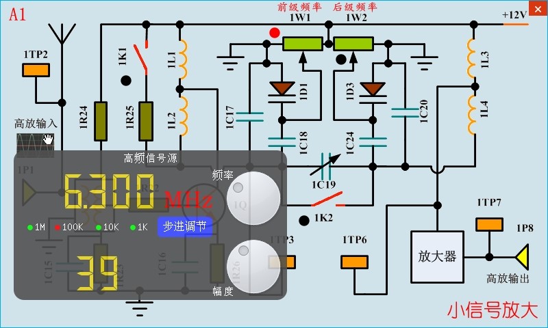 2、所有模块均采用ARM +电控元件结构,工作点调整、增益、负载等均有数字电位器调节;谐振回路参数、振荡器频率、滤波器带宽等均有可调电压控制;负载接入、元件切换均有电子开关操作.