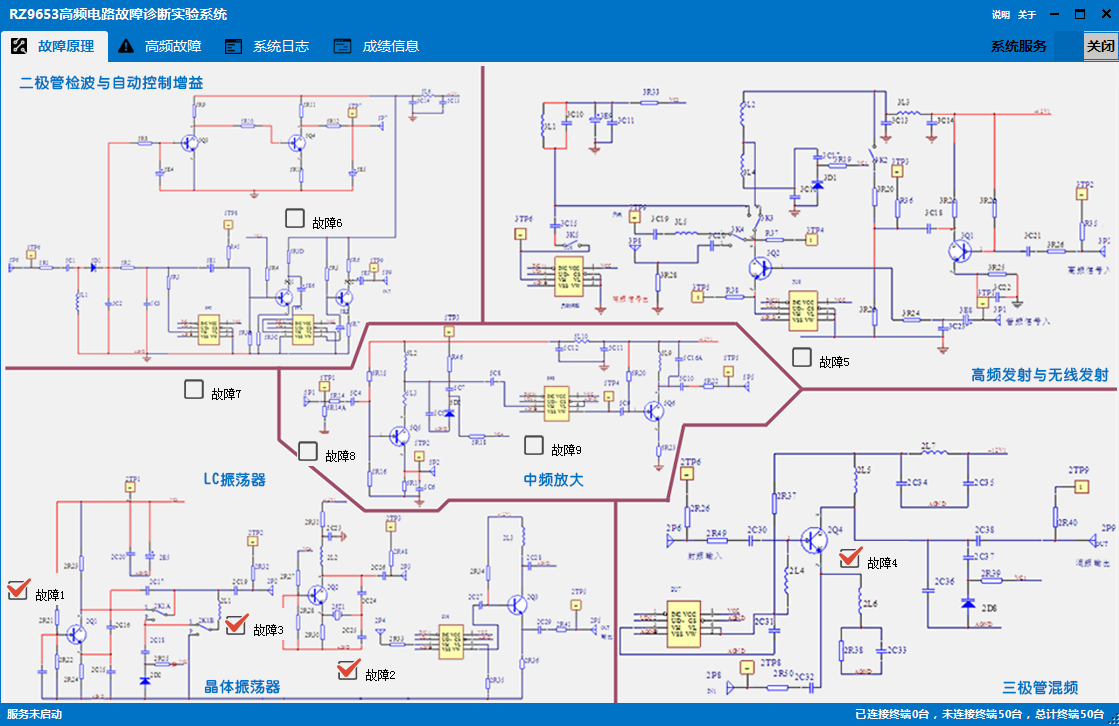 3、故障类型:工作点设置、谐振回路参数、滤波器带宽、放大器增益、负载、反馈、耦合、信号频率、幅度、振荡器频率控制、工作条件等