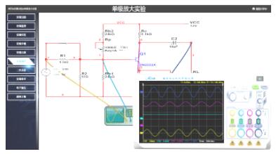 基于BS架构,学生能在浏览器上完成所用实验电路的仿真:工作点调整、 电路参数配置、信号源选择、反馈量控制、响应信号测试等;