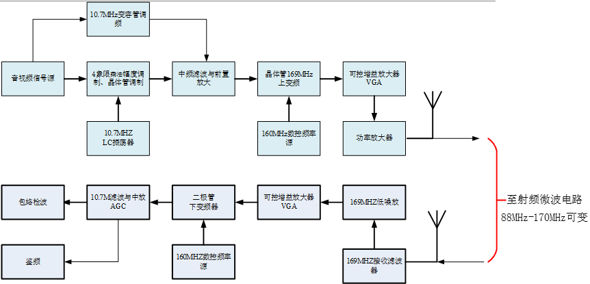 平台设计重点:能完成两门课程各自基本的实验;能将两门课程主要实验模块贯穿成一个完整的从基带信号变频至UHF信号,学生能自主完成电路系统实验。