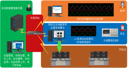 互联网+无线通信系统实验平台主要有三部分组成:无线通信系统综合实验平台、在线实验网管平台、在线实验操作平台。