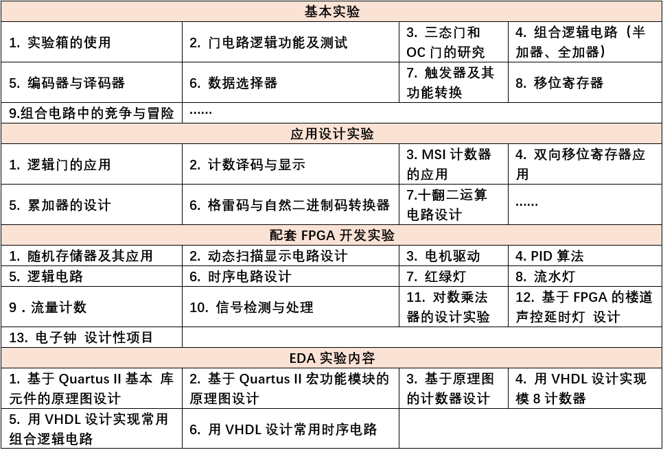 5.ADDA实验模块、6.DIP插座开发模块、7.配置FPGA开发模块、8.开发设计模块