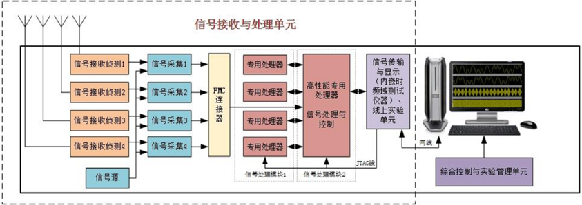 平台用于完成信号处理相关课程实验,核心由信号接收与处理单元、计算机组成。